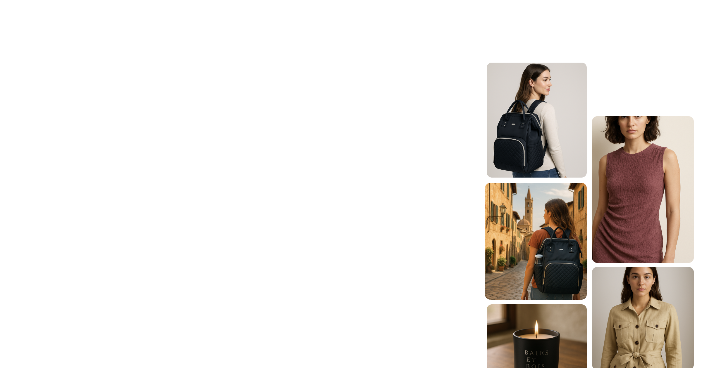 Get professional product photography in under 5 minutes - for 10 to 20× less than a traditional photoshoot. Just upload your image, choose a style, and receive 10 variations in your inbox.